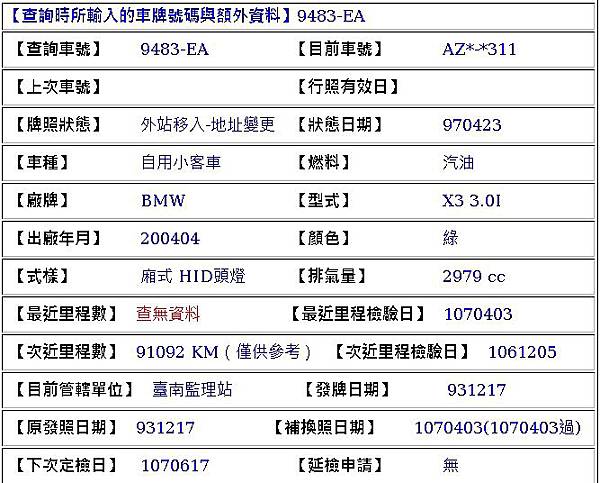 備註 : 資料齊全 一手車 跑92000公里